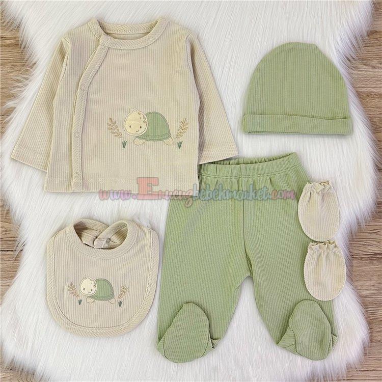 Bebitof 0-3 Ay Gülen Kaplumbağa 5 Parça Bebek Zıbın Seti Yeşil