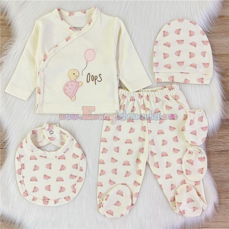 Bebitof 0-3 Ay Kaplumbağa 5 Parça Bebek Zıbın Seti Pembe