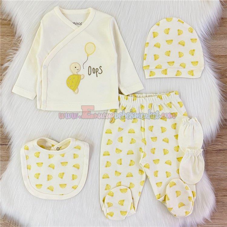 Bebitof 0-3 Ay Kaplumbağa 5 Parça Bebek Zıbın Seti Sarı