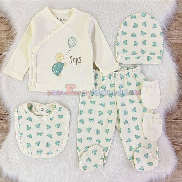 Bebitof 0-3 Ay Kaplumbağa 5 Parça Bebek Zıbın Seti Yeşil