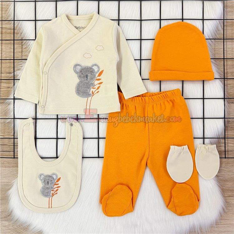 Bebitof 0-3 Ay Koala Nakışlı 5 Parça Bebek Zıbın Seti Turuncu