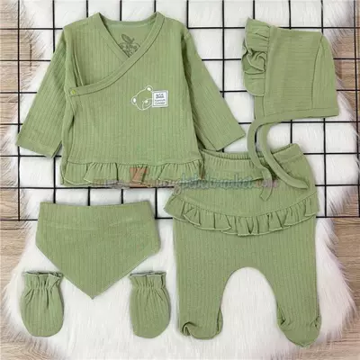 Begisa 0-3 Ay Ayıcıklı Kız Bebek 5'Li Zıbın Seti Yeşil