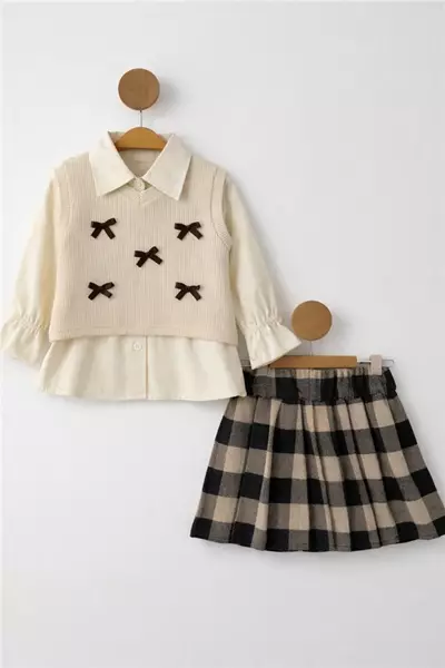 Bella 2-5 Yaş Çantalı Etekli Kız Çocuk Takım Bej