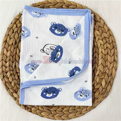 Berço 85X80 Cm Tek Kat Bebek Battaniye Ayıcık Baskılı Mavi