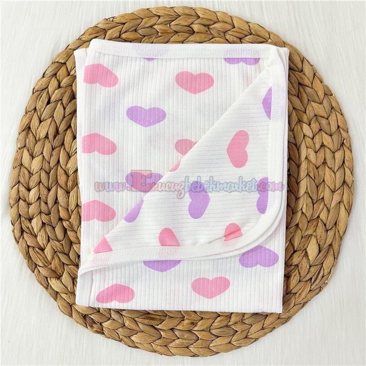 Berço 85X80 Cm Tek Kat Bebek Battaniye Kalp Baskılı Lila