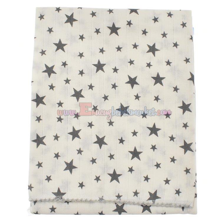 Berço Baby 90X80 Cm Müslin Bebek Battaniye Yıldızlı Gri