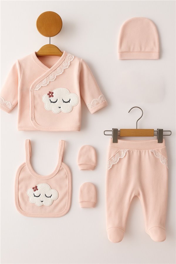 Beyaz Bebek 0-3 Ay 5 Parça Zıbın Takım Bulutlu Somon