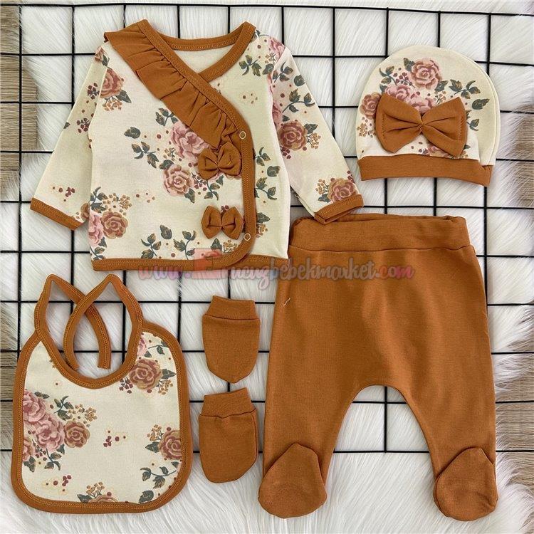 Beyaz Bebek 0-3 Ay Çiçekli 5 Parça Zıbın Takım Bakır