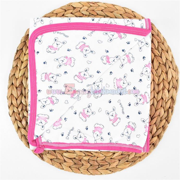 Beyzi 90X75 Cm Tavşanlı Çift Katlı Penye Battaniye Fuşya