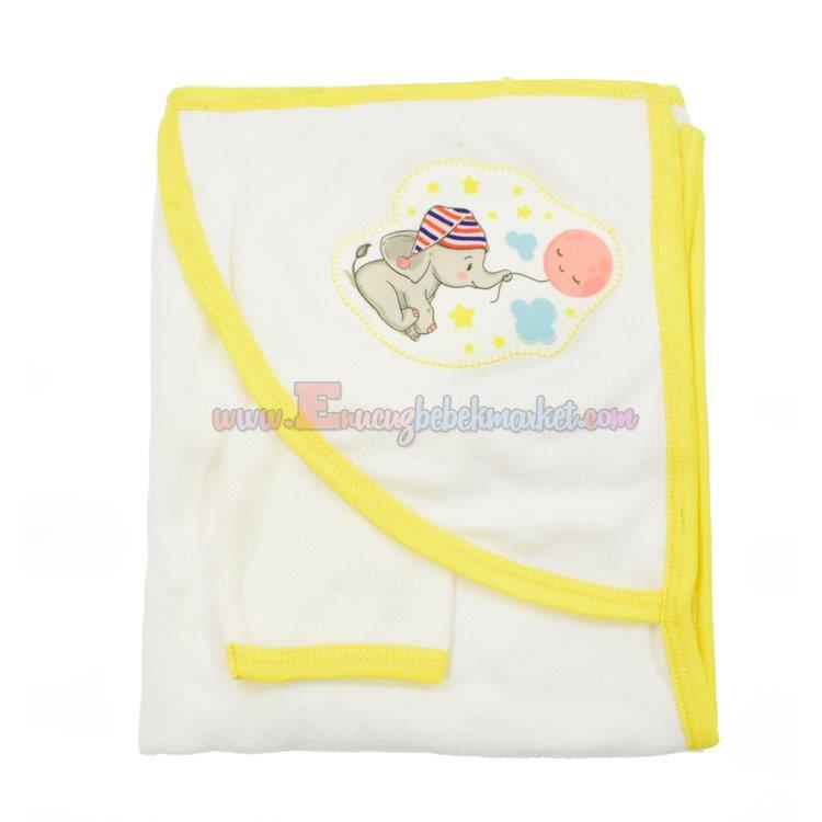 Bidilish 85X70 Cm Fil Nakışlı Bebek Banyo Havlusu Sarı