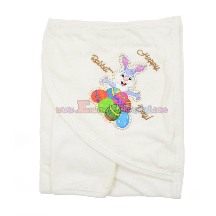 Bidilish 85X70 Cm Tavşan Nakışlı Bebek Banyo Havlusu Krem