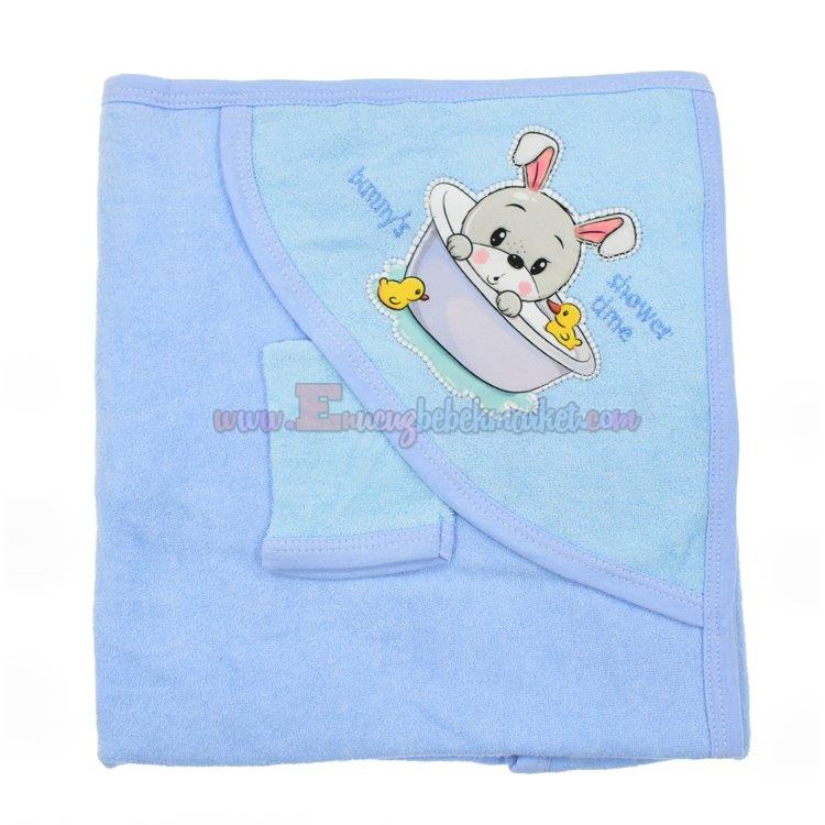 Bidilish 85X70 Cm Tavşan Nakışlı Bebek Banyo Havlusu Mavi