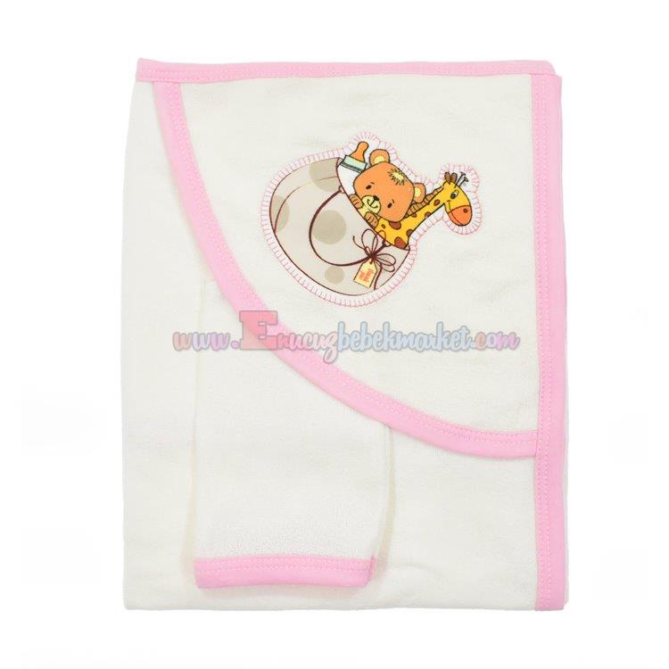 Bidilish 85X70 Cm Zürafa Nakışlı Bebek Banyo Havlusu Pembe