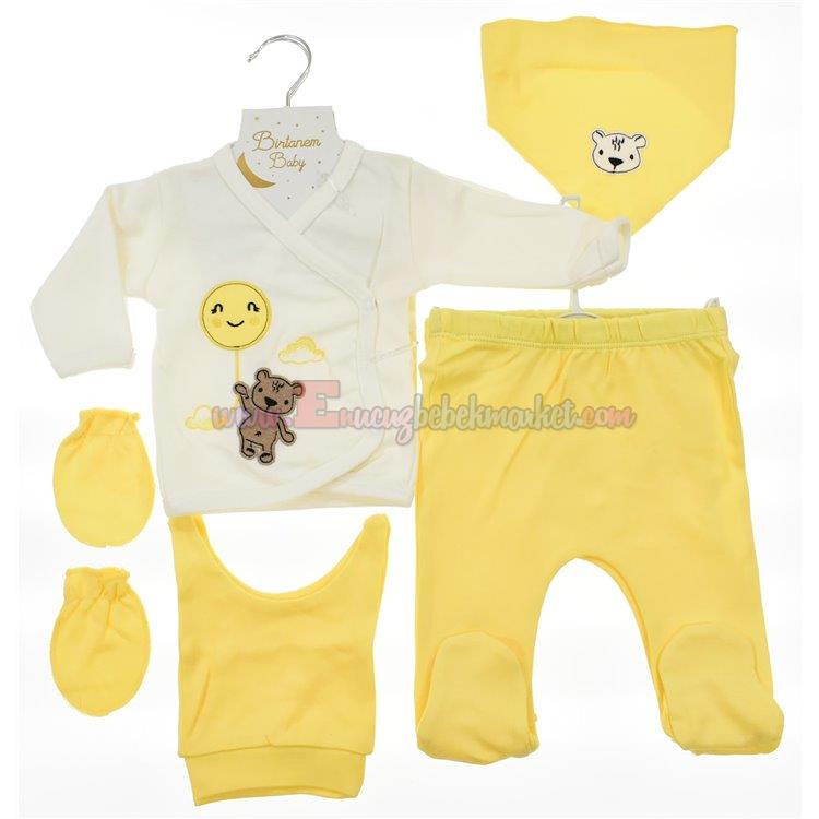 Birtanem 0-3 Ay 5 Parça Zıbın Takım Ayıcık Nakışlı Sarı