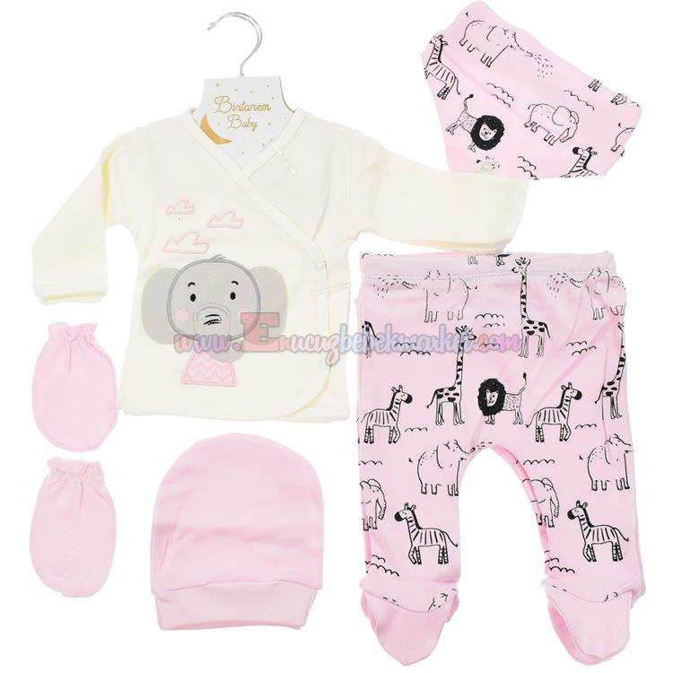 Birtanem 0-3 Ay 5 Parça Zıbın Takım Fil Nakışlı Pembe