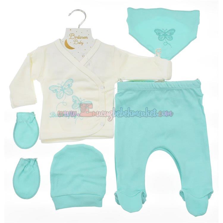 Birtanem 0-3 Ay 5 Parça Zıbın Takım Kelebek Nakışlı Mint