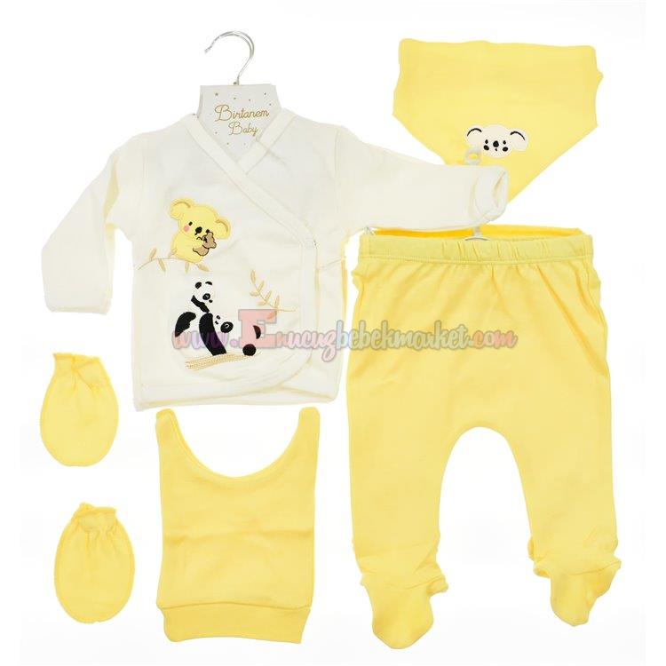 Birtanem 0-3 Ay 5 Parça Zıbın Takım Panda Nakışlı Sarı