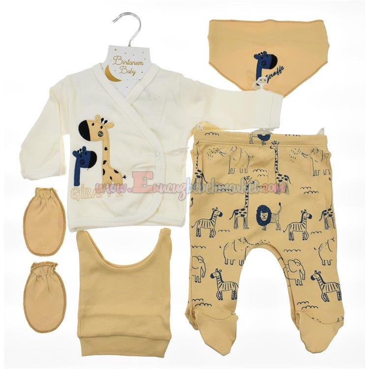 Birtanem 0-3 Ay 5 Parça Zıbın Takım Zürafa Nakışlı Bej