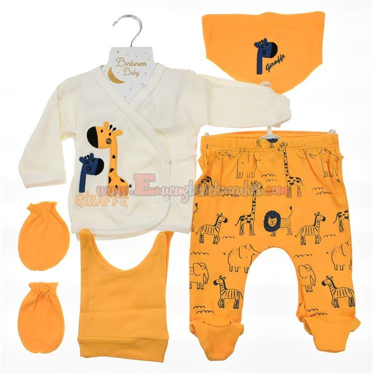 Birtanem 0-3 Ay 5 Parça Zıbın Takım Zürafa Nakışlı Koyu Sarı