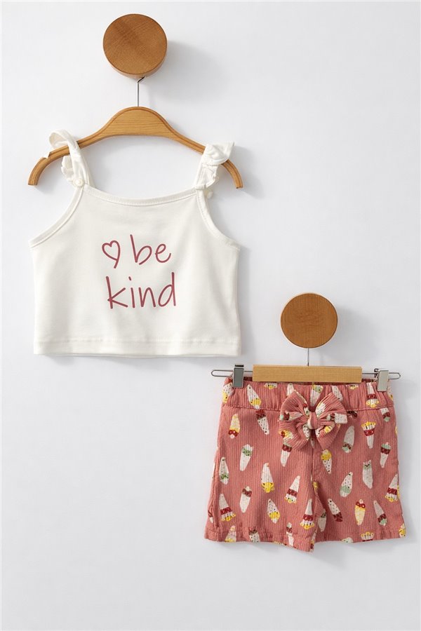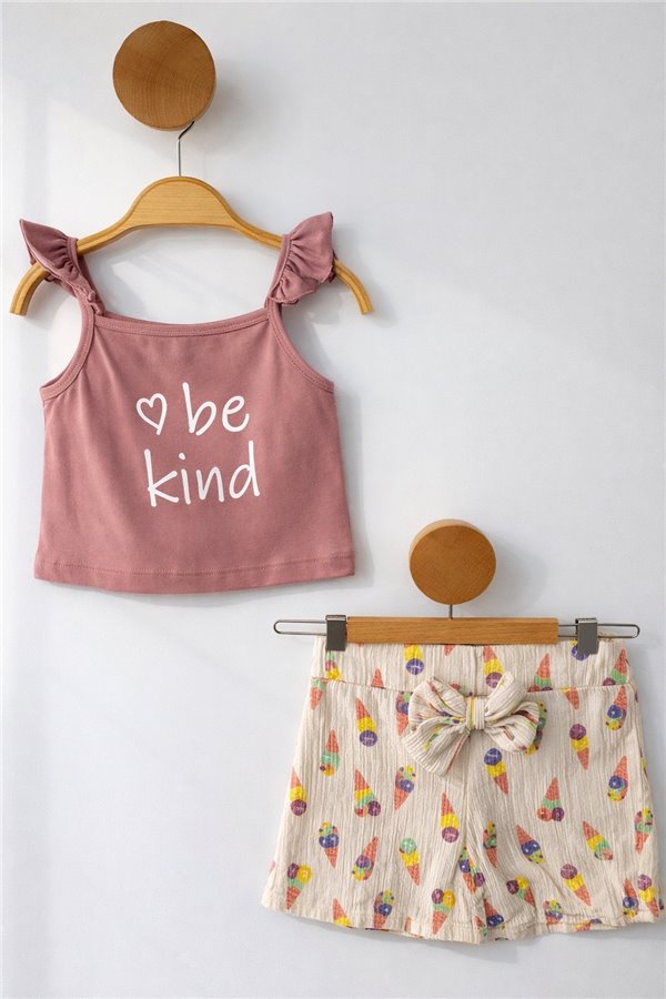 Deco 9-24 Ay Be Kind Baskılı Kız Bebek Takım Gül Kurusu