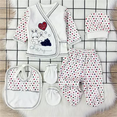 Bombino 5 Parça Penye Zıbın Takım Kalpli Krem Lila