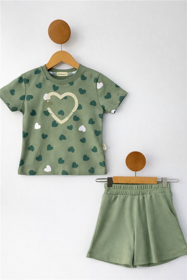 Bomlo 2-6 Yaş Kalpli Kız Çocuk Takım Kahverengi