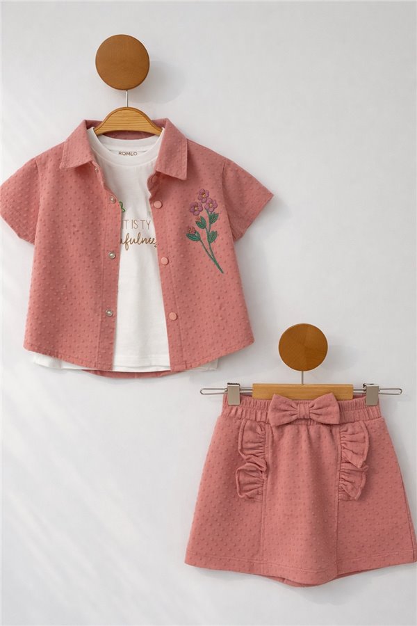 Krc 1-2-3 Yaş Çiçekli Kelebek Baskılı Kız Bebek Takım Pembe