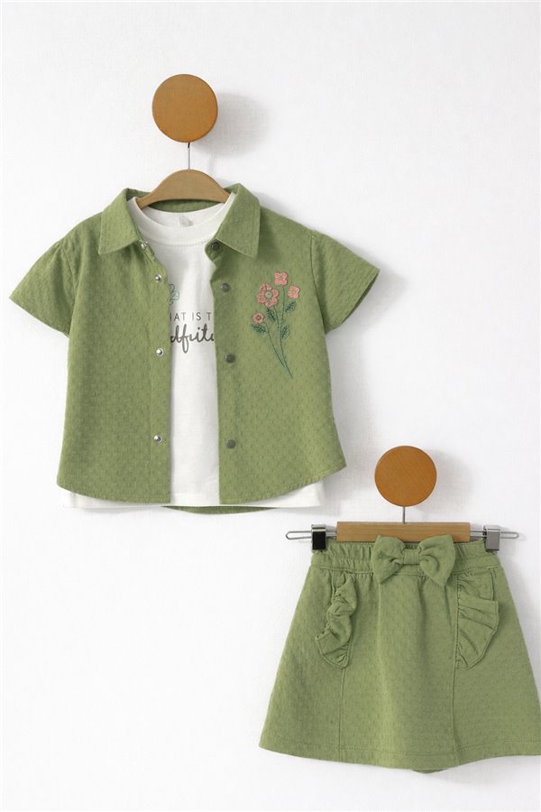 Bomlo 6-24 Ay Çiçek Nakışlı Şort Etekli Kız Bebek Takım Yeşil