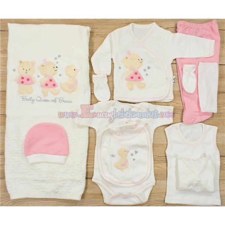 Brava Baby 0-3 Ay 10'Lu Zıbın Takım Queen Nakışlı Pembe