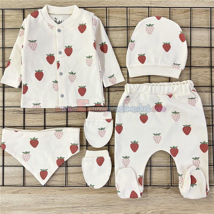 By Bubbles 0-3 Ay 5 Parça Bebek Zıbın Takım Çilek Baskılı