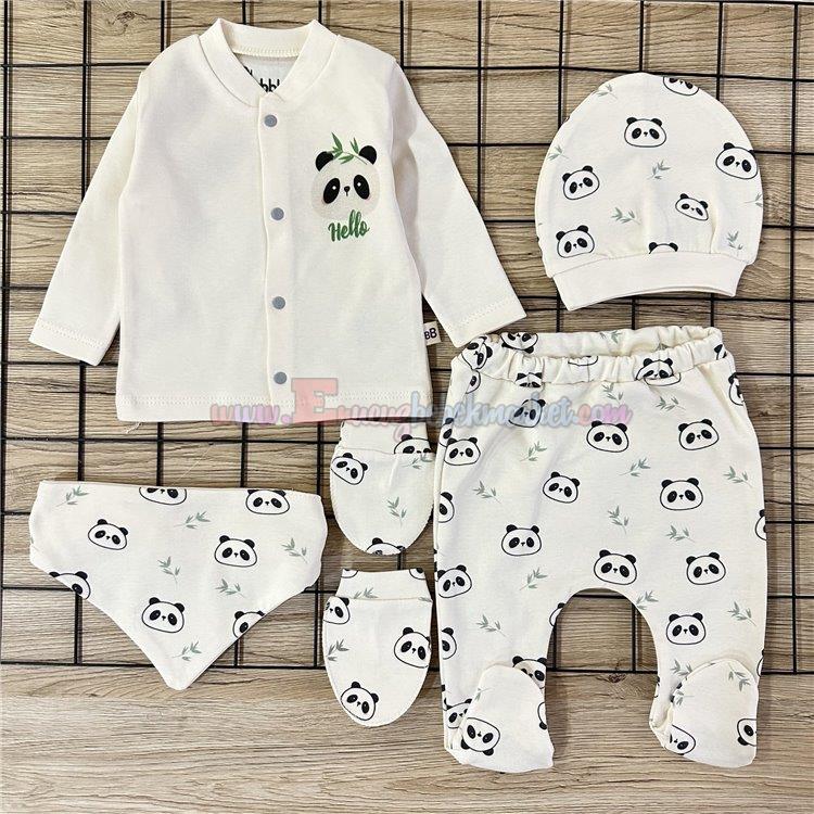 By Bubbles 0-3 Ay 5 Parça Bebek Zıbın Takım Panda Baskılı