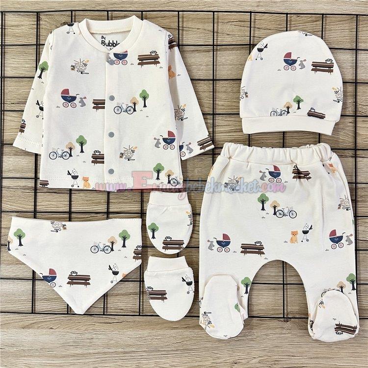 By Bubbles 0-3 Ay 5 Parça Bebek Zıbın Takım Park Baskılı