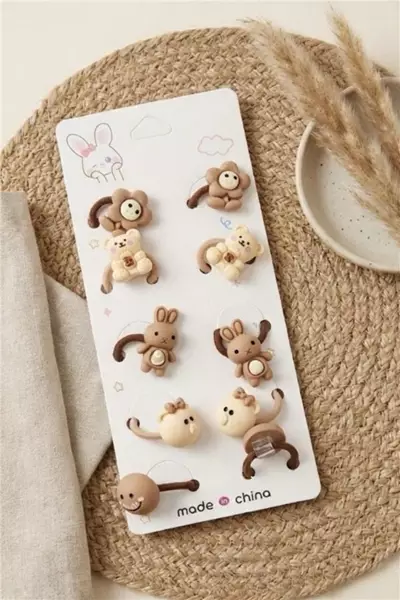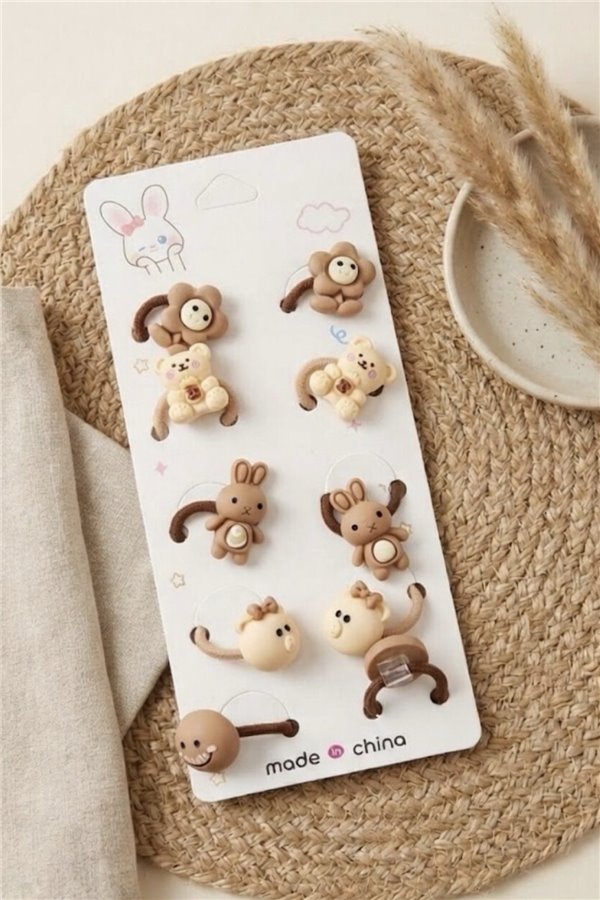 Çiftli Karışık Hayvan ve Çiçek Figürlü 5'Li Lastik Toka Set