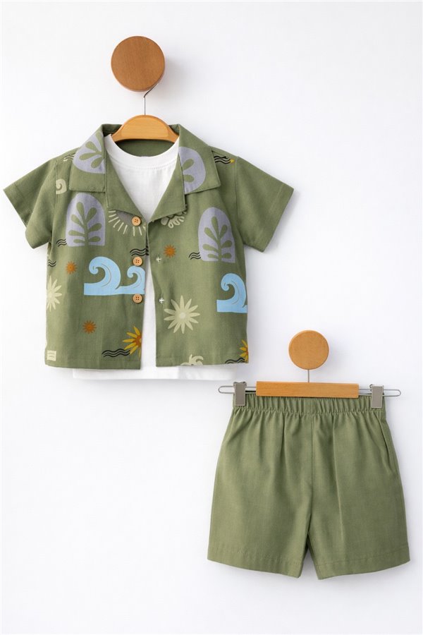 Çıtır 6-24 Ay Palmiye Müslin Erkek Bebek Takım Yeşil
