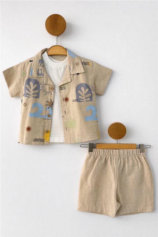 Çıtır 6-24 Ay 3'Lü Müslin Erkek Bebek Takım Bej