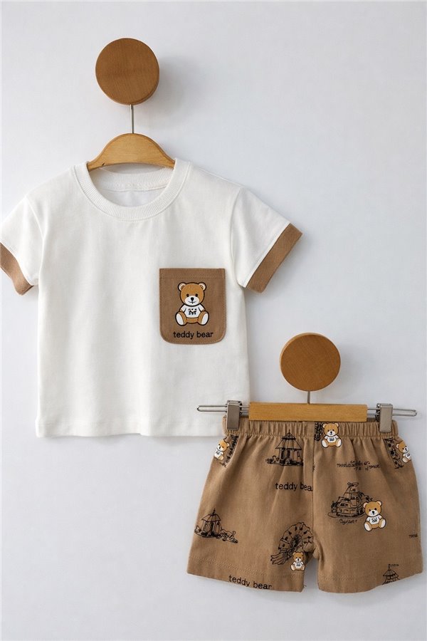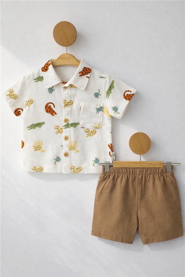 Çıtır 6-24 Ay Cepli Müslin Şortlu Erkek Bebek Takım Kahverengi
