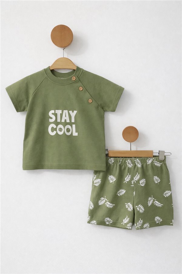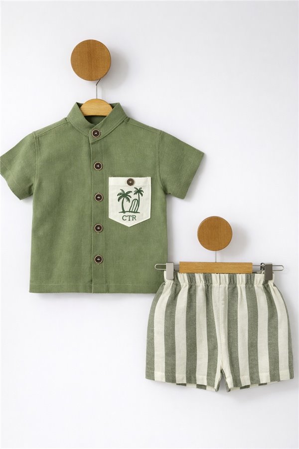 Çıtır 6-24 Ay Palmiye Müslin Erkek Bebek Takım Yeşil