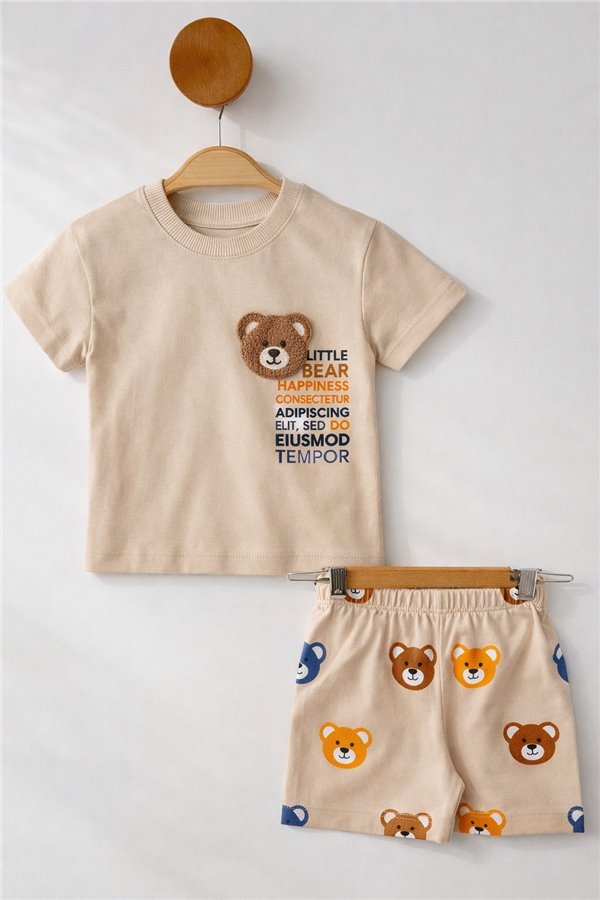 Çıtır 6-24 Ay Bear Nakışlı Erkek Bebek Takım Bej