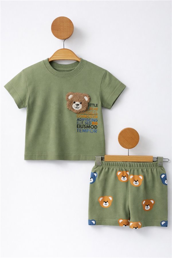 Çıtır 6-24 Ay Bear Nakışlı Erkek Bebek Takım Yeşil