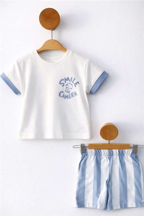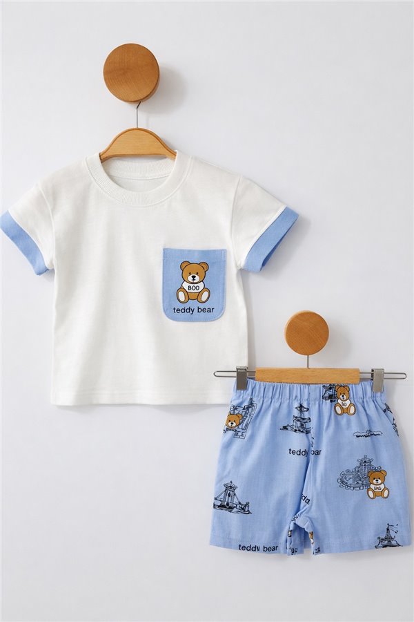 Çıtır 6-24 Ay Cepli Müslin Şortlu Erkek Bebek Takım Mavi