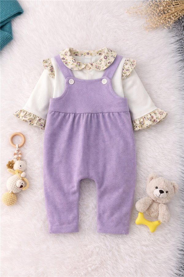 Çkr Baby 3-6-9-12-18 Ay Fırfırlı Kız Bebek Salopet Tulum Lila