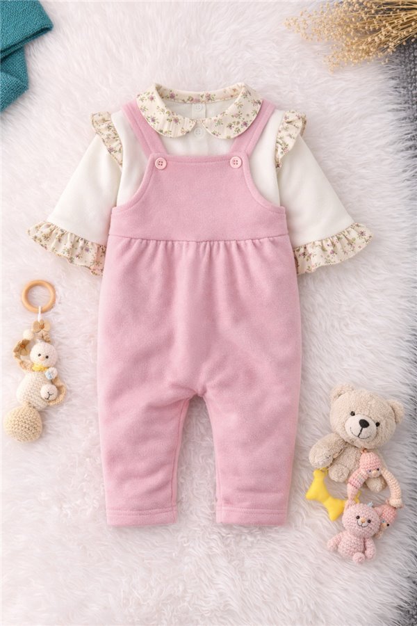 Çkr Baby 3-6-9-12-18 Ay Fırfırlı Kız Bebek Salopet Tulum Pembe