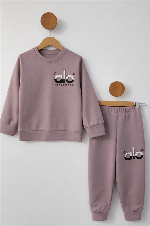 3-4-5-6-7 Yaş Fiyonklu Yazı Baskılı Çocuk Takım Gül Kurusu