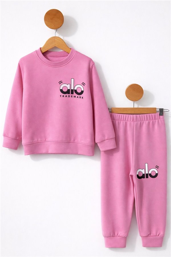 3-4-5-6-7 Yaş Fiyonklu Yazı Baskılı Çocuk Takım Gül Kurusu