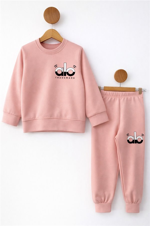 Cmk 3-10 Yaş Yazı Baskılı Penye Kız Çocuk Takım Pembe