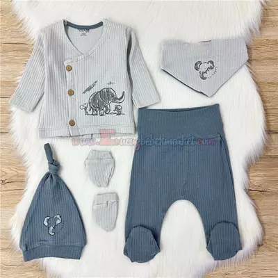 Çojuxs 0-3 Ay 5'Li Zıbın Takım Fil Baskılı Gri