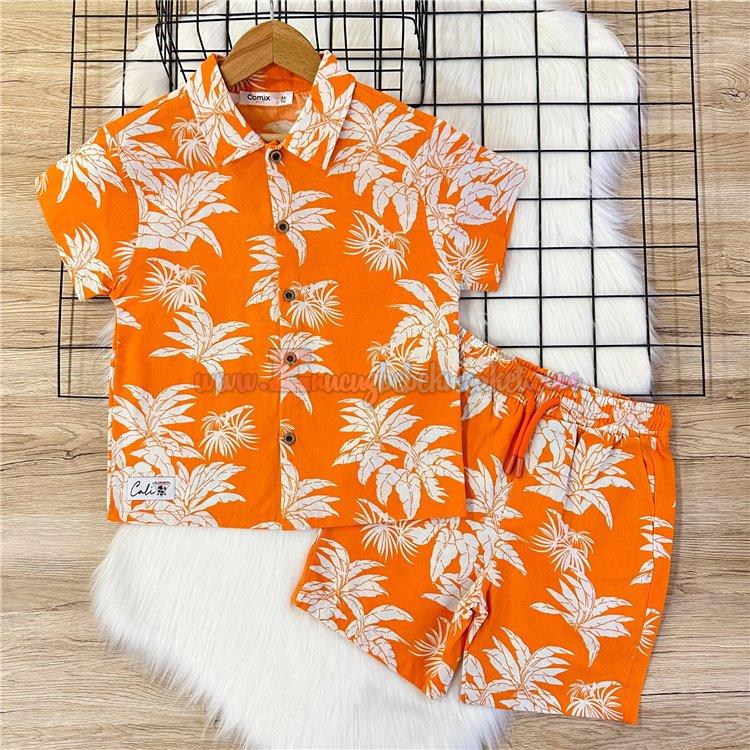 2-9 Yaş Yazlık Erkek Çocuk Takım Beach Baskılı Kahverengi