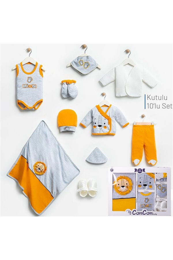 Baby Zuhu 0-3 Ay 10 Parça Bebek Zıbın Set Dino Turuncu