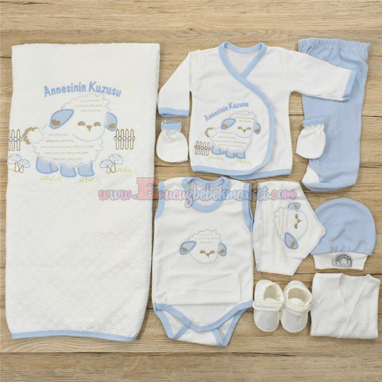 Concon 0-3 Ay 10 Parça Bebek Zıbın Seti Kuzu Nakışlı Mavi