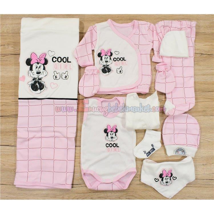 Concon 0-3 Ay 10 Parça Bebek Zıbın Seti Miki Nakışlı Pembe